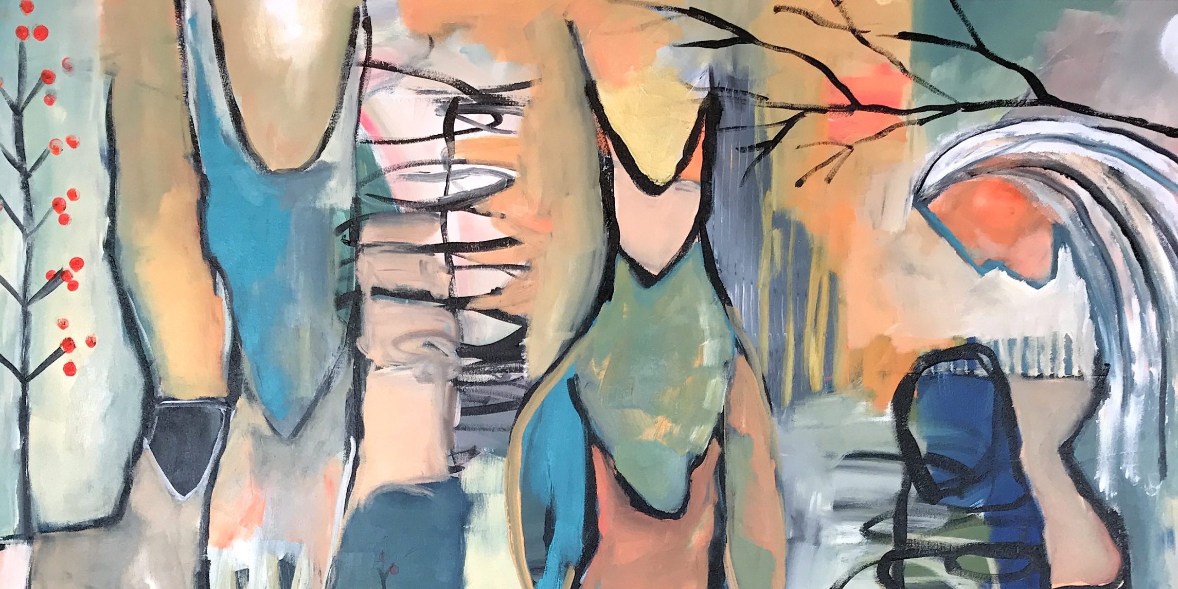 This painting was inspired by all the little paintings I’ve been doing at home lately. I started the first layer by using an exercise I call, Musical Lines, and it definitely led to a pretty exciting breakthrough for me!