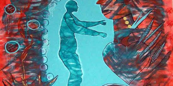 “My “breakthrough” piece. Happened freely following the images that emerged. I call it Shamanic Dream because it looks like shamanic journeying with dream images.“ Christine Kennedy